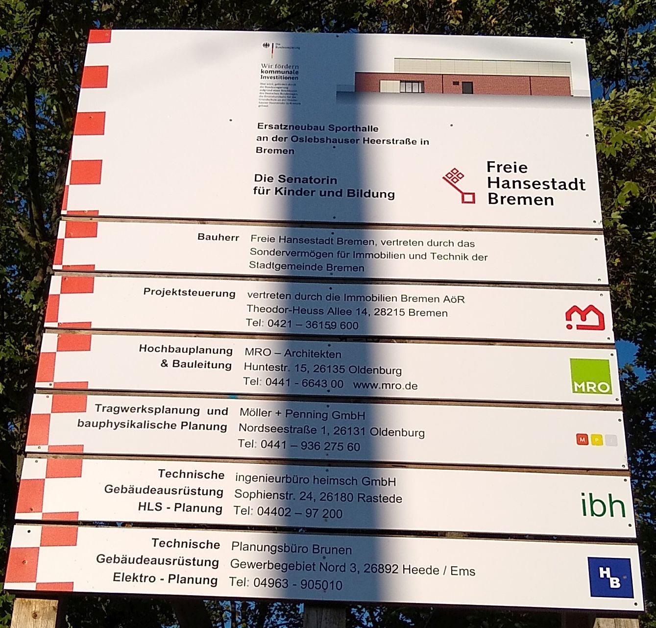 Weitere Bauaktivitäten gibt es beim Neubau der Turnhalle der Grundschule Oslebshauser Heerstraße:
