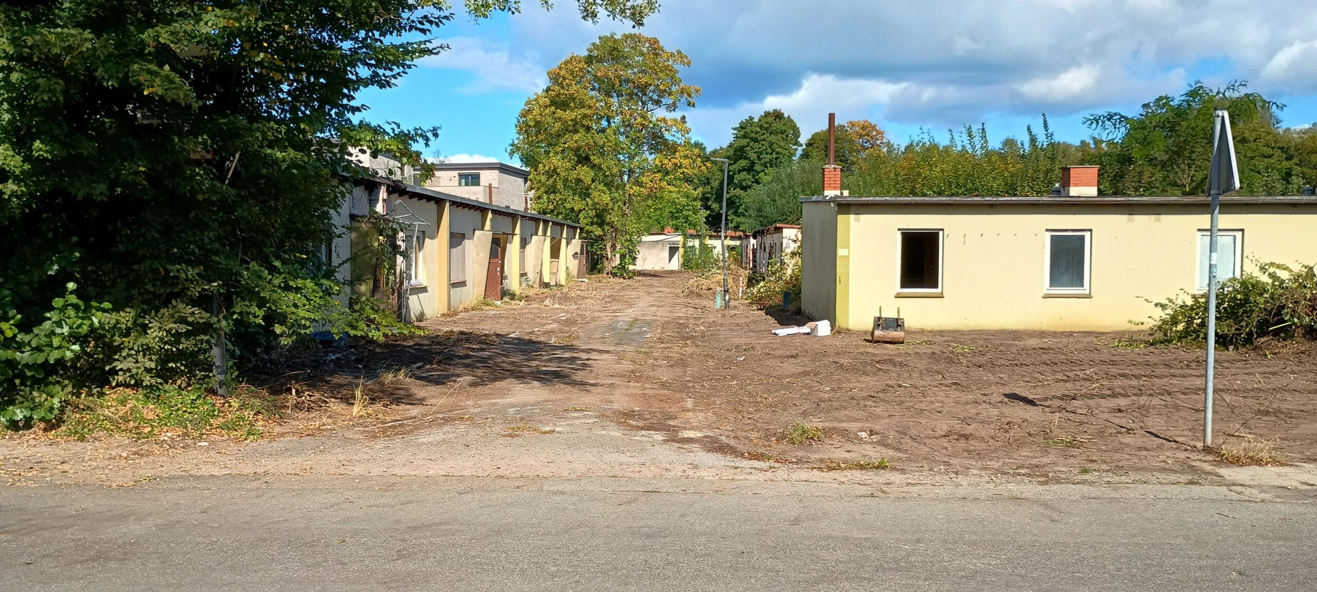 Bis vor eini­gen Wochen. Gerüch­ten nach soll die Stadt Druck gemacht haben. Es soll für den Teil der Sozi­al­häu­ser im Kauf­ver­trag eine Bau­ver­pflich­tung ver­ein­bart wor­den sein und um die ein­hal­ten zu kön­nen, wird es dann drin­gend Zeit mit dem Abriss. Jeden­falls wur­den die wohl noch ca. 5 offi­zi­el­len Bewoh­ner für die Zeit der Abriss- und hof­fent­lich dann Bau­maß­nah­men in die vor­de­ren Häu­ser umge­sie­delt. Es sol­len zudem nicht gemel­de­te Per­so­nen (aus Ost­eu­ro­pa) ohne Miet­ver­hält­nis in Häu­sern gelebt haben — über deren Ver­bleib ist uns aktu­ell nichts bekannt.