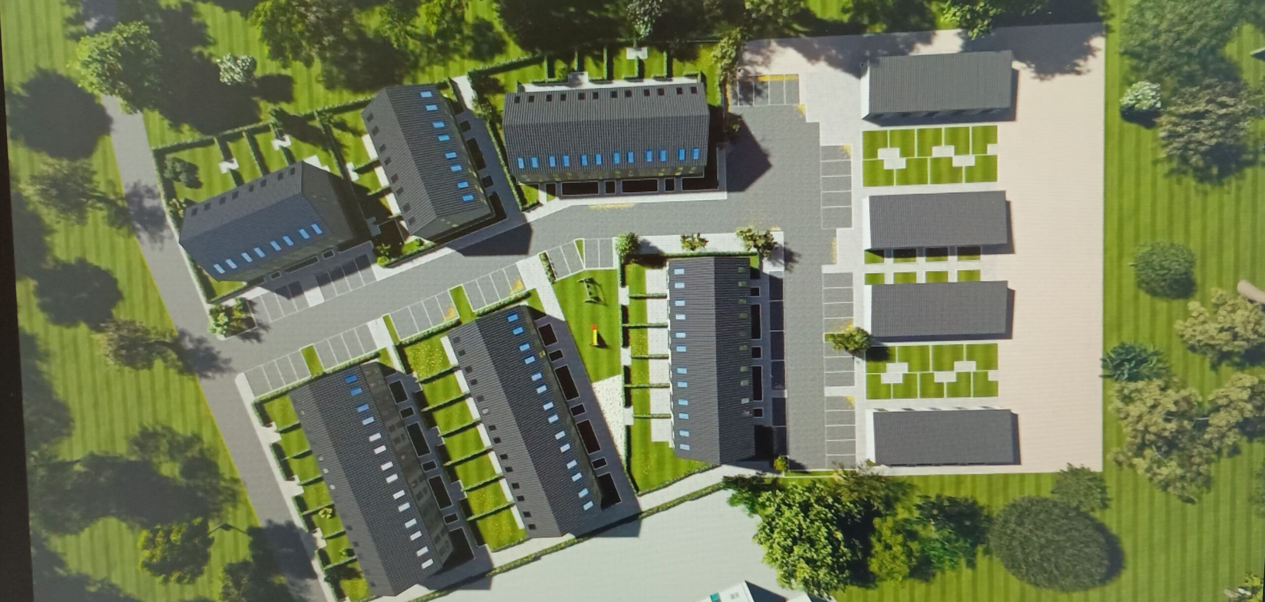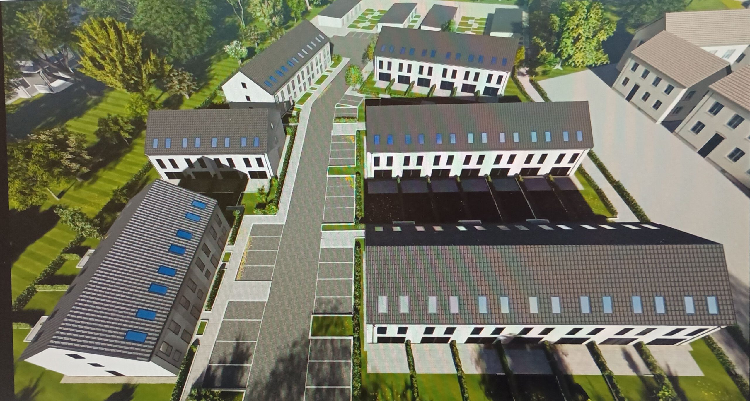 Im Jahr 2022 wur­den die Bau­plä­ne öffent­lich vor­ge­stellt. Ob es dabei geblie­ben ist, das wis­sen wir nicht. Mög­li­cher­wei­se wer­den nach Abschluss der Abriss­ar­bei­ten auch erst­mal nur die (12) klei­nen Sozi­al­häu­ser im hin­te­ren Bereich gebaut.